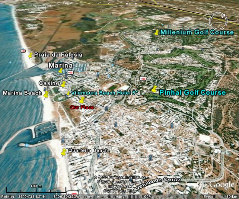 This satellite picture shows our place in relation to Golf Courses in Vilamoura.